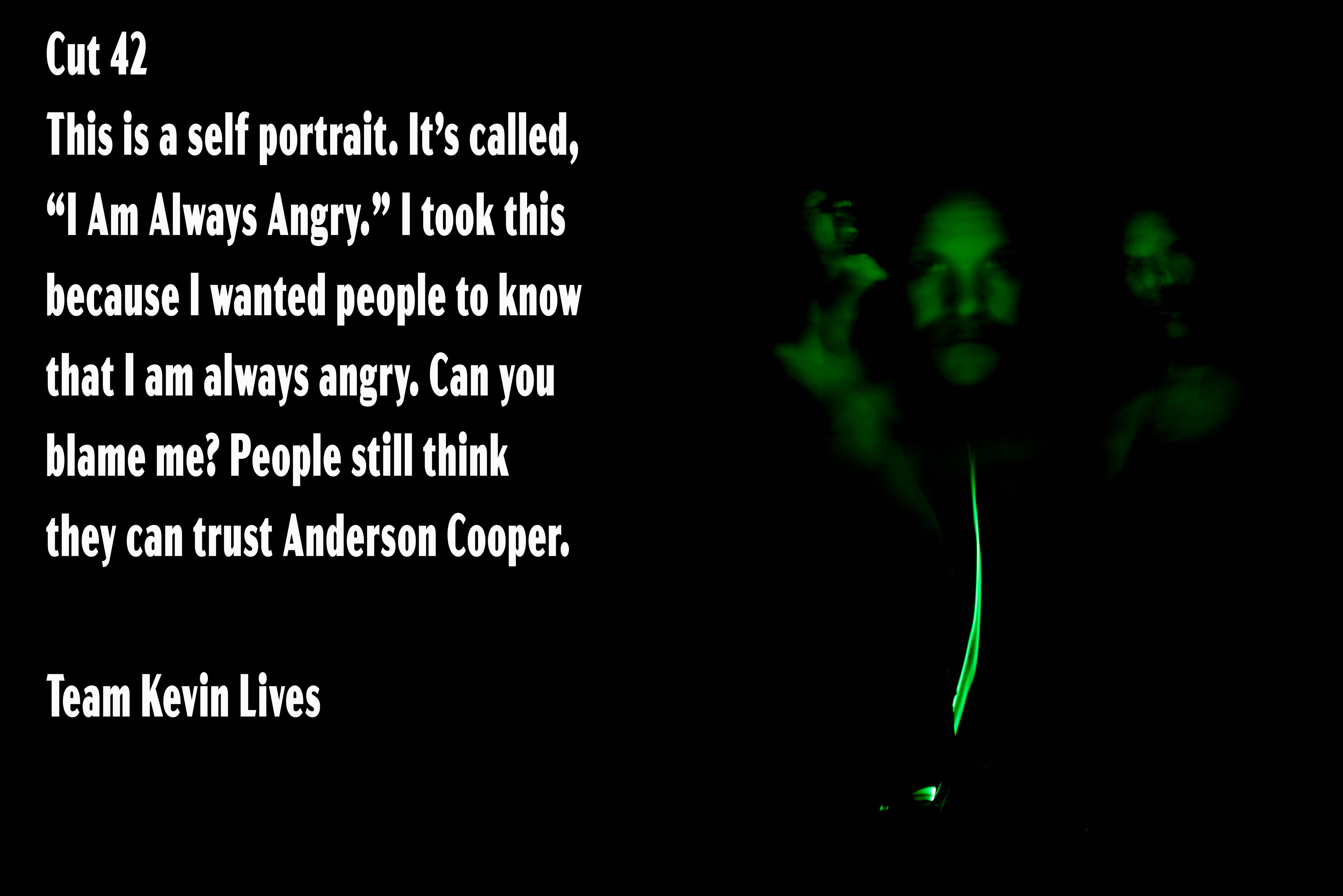 This is a self portrait. It’s called, “I Am Always Angry.” I took this because I wanted people to know that I am always angry. Can you blame me? People still think they can trust Anderson Cooper.